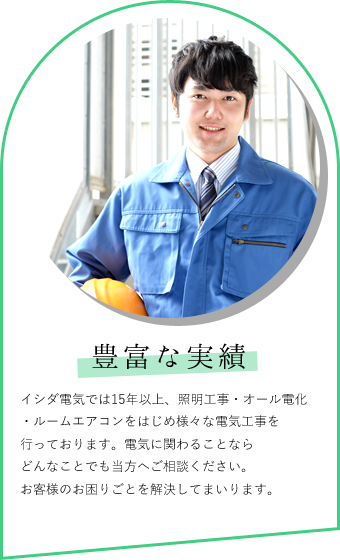 株式会社イシダ電気では15年以上、照明工事・オール電化・ルームエアコンをはじめ様々な電気工事を行っております。